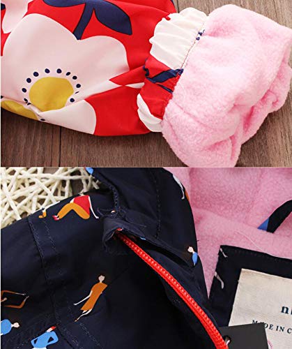 More information about Boys & Girls Hooded Floral Waterproof Rain Jacket Fleece Lined Windbreaker Coat