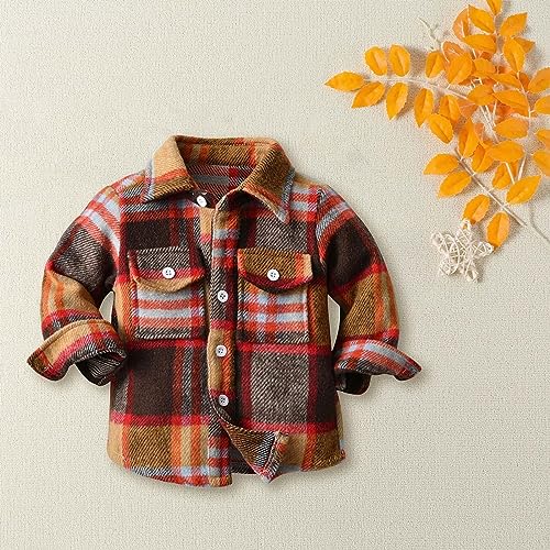 Toddler Baby Girl Boy Flannel Jacket Plaid Shacket Long sleeve Button Down Shirt Tops Children Fall Winter Coat 6