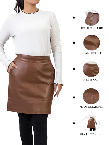 • Premium Real Leather Material: Crafted from soft, high-quality lambskin leather, these women’s skirts provide a luxurious feel with exceptional comfort and durability. The natural leather molds beautifully to your body over time, enhancing its fit and style.