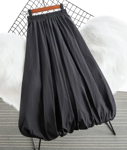 More information about Femiserah Women's Elastic Waist A Line Midi Pompom Skirt Casual Lantern Skirt