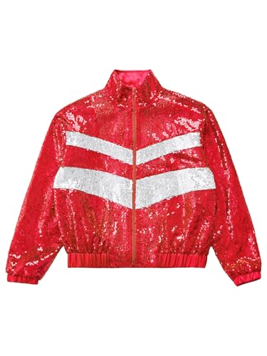 FEESHOW Kids Girls Boys Sequins Jacket Casual Bomber Jacket Zip up Coat Outwear for Hip Hop Jazz Dance Disco Party Wear 6