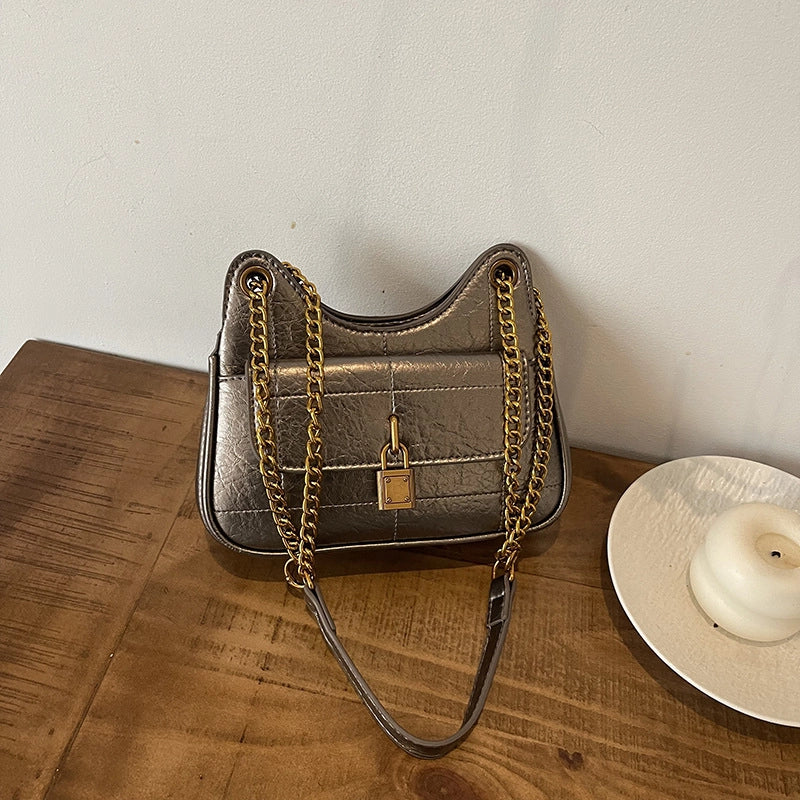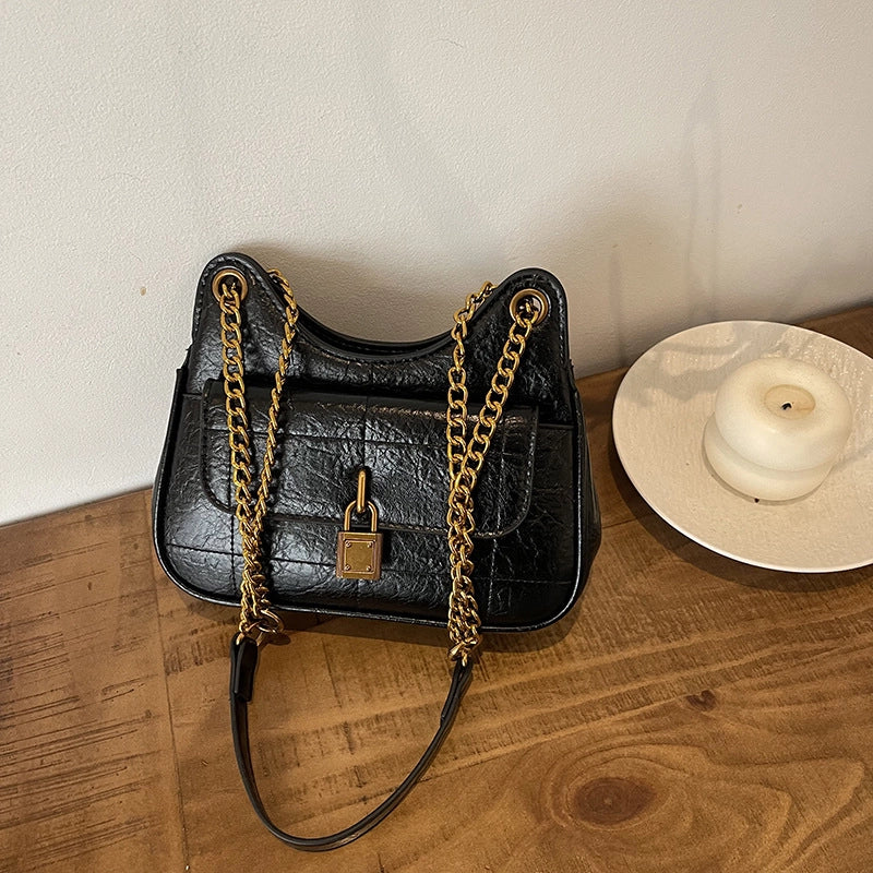 More information about Women's Pu Leather Solid Color Vintage Style Sewing Thread Dumpling Shape Zipper Shoulder Bag
