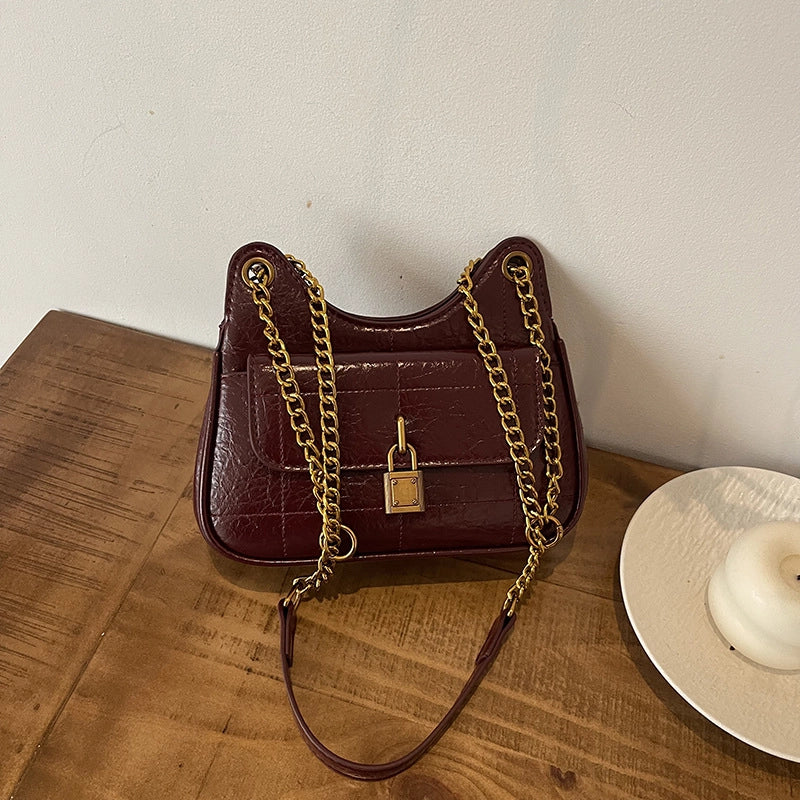 HOT ! Women's Pu Leather Solid Color Vintage Style Sewing Thread Dumpling Shape Zipper Shoulder Bag