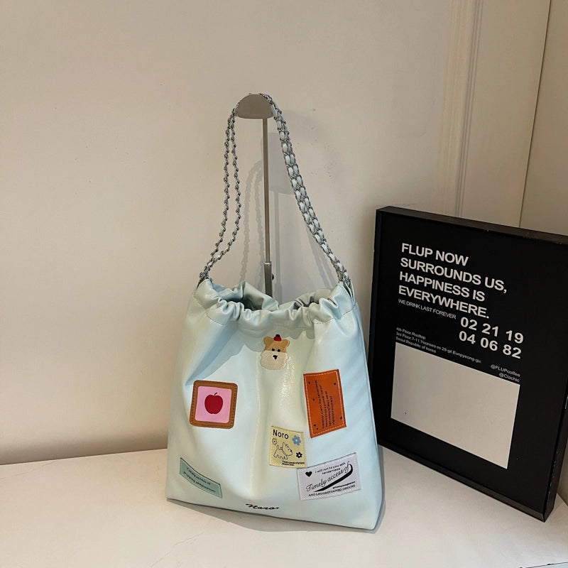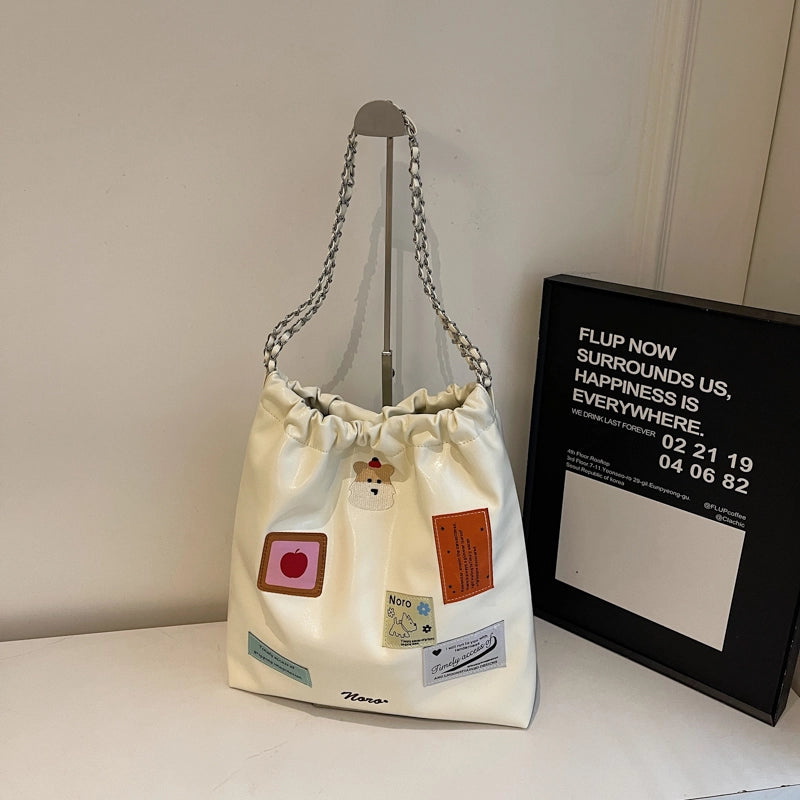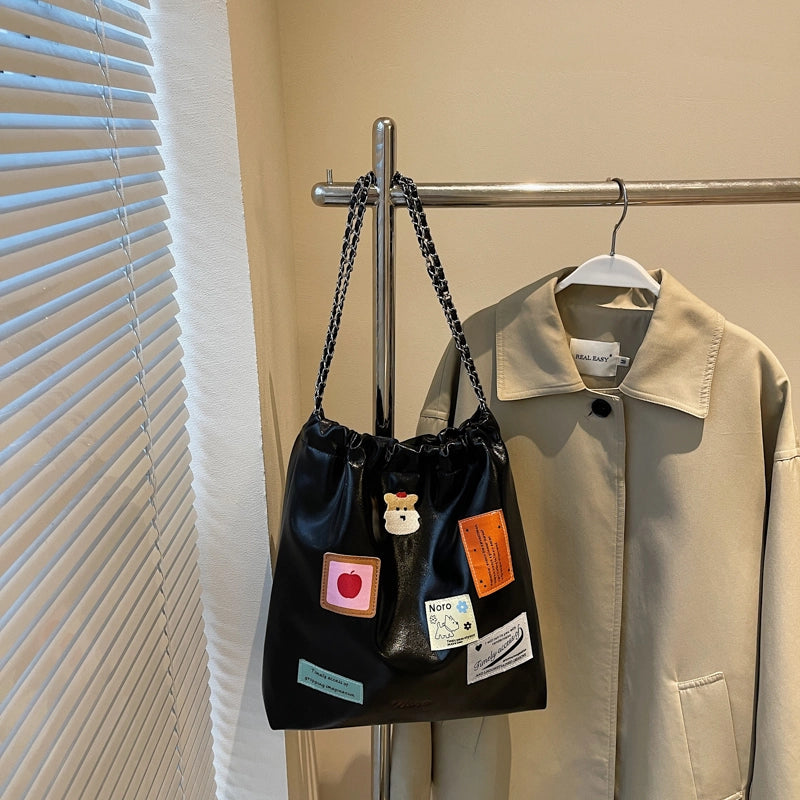 HOT ! Women's Medium Pu Leather Solid Color Vintage Style Classic Style Sewing Thread Square Magnetic Buckle Shoulder Bag