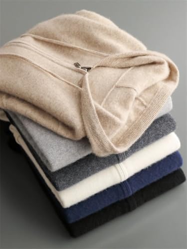 Men's Winter Cardigan 100 Percent Merino Wool Casual Hooded Open Stitch Solid with Pockets Thick Knit 7