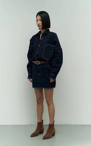 PIRAL Women’s Navy Denim Skirt Set – Oversized Jacket & Mini Skirt, 100% Cotton, Contrast Stitch Detailing 6