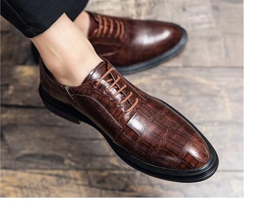 YZABEL Slip On Dress Shoes for Men Mens Shoes Classic Style British Retro Pointed Toe Buckle Business Casual Pointed Toe Shoes Mens Two-Tone Lace Up Dress Oxfords Formal Shoes 6