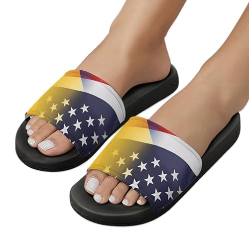 Flag of Romania And U.S. FLAG House Sandals Non-Slip Bathroom Slippers Beach Summer Shoes for Men Women 7