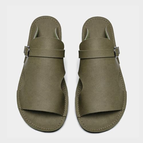 HOT ! Men's Leather Breathable Soft Sole Beach Slides Sandals Retro Comfortable Hand Stitching Round Toe Buckle Strap Slip On Anti-Slip Flat Summer Casual Slides for Indoor Outdoor
