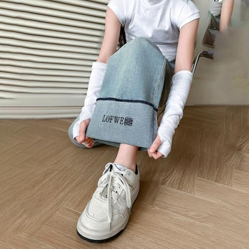 HOT ! Girls Straight Leg Jeans Baggy Elastic Waist Wash Denim Pants Solid Casual Embroidery Loose Fit Trousers