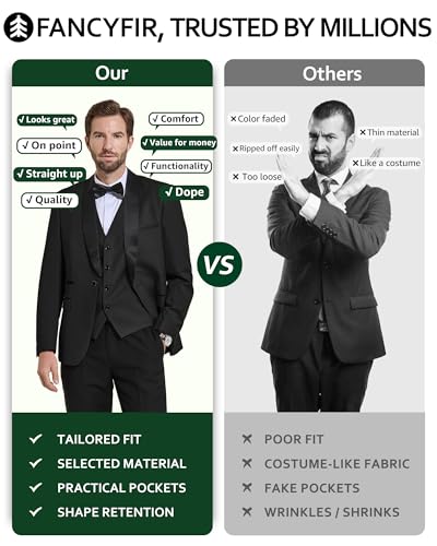 • OUTSTANDING QUALITY AND CRAFT: FancyFir suits showcase quality and craftsmanship, with durable, breathable fabric and enhanced comfort from larger shoulder pads and chest linings. Each suit undergoes over 300 steps to ensure great quality