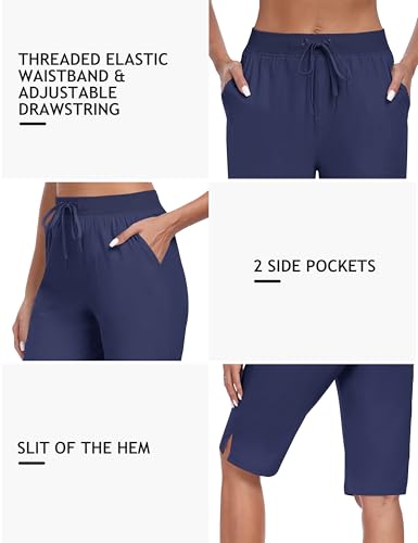 • Elastic Waistband: Knee Length Shorts for Women have a 360-degree Threaded elastic waist with adjustable drawstring to prevent belly creasing and improve wearing comfort and prevent falling off when you are exercising or walking.