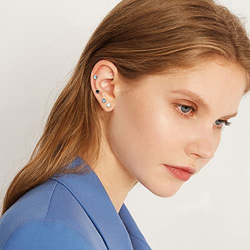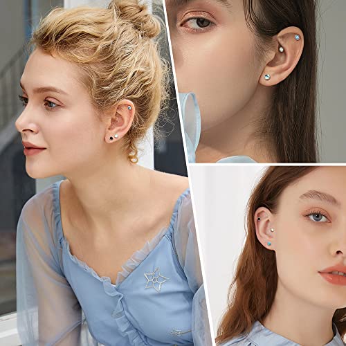 HOT ! JeryWe 20G 4MM Hypoallergenic Studs Earring Set Moonstone/Turquoise/Round Stud Earrings Stainless Steel Stud Earrings for Women Men 6 Pairs