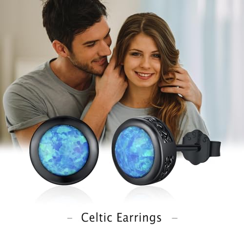 • Celtic Knot: A Blue Opal in the middle of the round stud earrings, so many small celtic around the central Blue Opal, which is quite eye-catching and attractive. and cool fashion earrings definitely matched your everyday outfits look, these stud are so classic and fashionable, which men&women