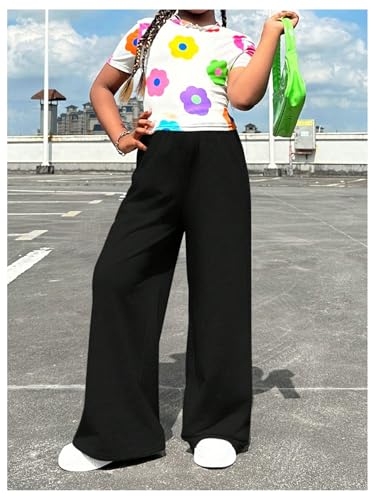 More information about Floerns Girl's Casual Colorblock Elastic Waist Baggy Wide Leg Athletic Sweatpants with Pockets