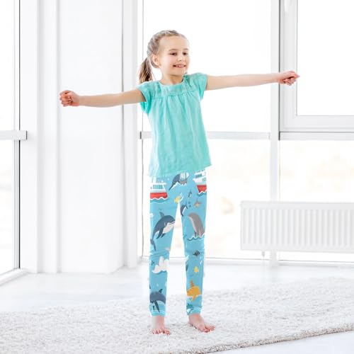 Bolaz Toddler Girls Leggings Printed Yoga Pants Leggings Yacht Whale for Kids 4