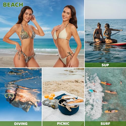 • 【Occasions】Our fashionable camo string bikini set is an absolute must-have for various occasions. Whether you're on vacation, going for a swim, lounging by the pool, attending a beach party, camping, or even taking a jog along the beach, it's the perfect choice.