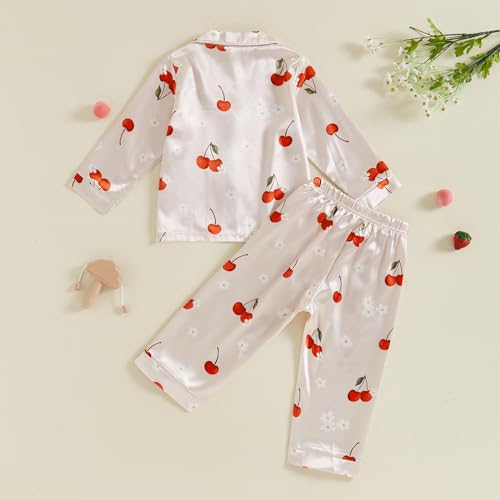 • Design: Classic button-up pajamas set for toddler kids girls, long sleeve silk pajamas autumn satin pajamas, strawberry pajamas for toddler girls silk fall pajamas, button-down sleep shirts and long pants pjs bottoms 2-piece silk pajamas loungewear outfits.