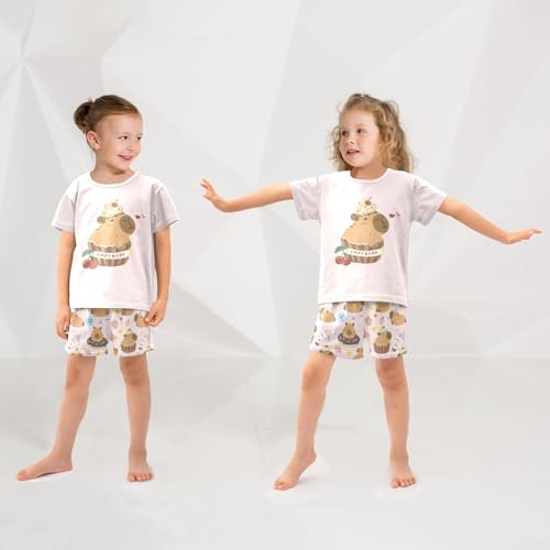 HOT ! Cupcake Capybara Pink Summer Cute Pajama Sets, Short Sets for Daily Wears and Sleep Wears