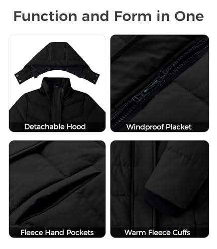 • Enhanced Warmth: Filled with thick down-like cotton padding and lined with soft fleece, this girls' winter jacket is a closet staple for daily wear in winter. And the long parka jacket features stand collar with hood, sleeves with warm fleece cuffs can keep snow and cold wind out, keeping your kids warm and comfortable during cold winter.