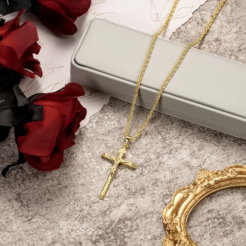 14K Gold Cross Necklace for Women for Men Jesus On Cross Crucifix Necklace Men & Women Faith Jewelry Presents 54.5mm 20/22/24in 3