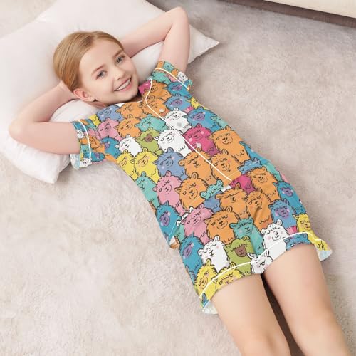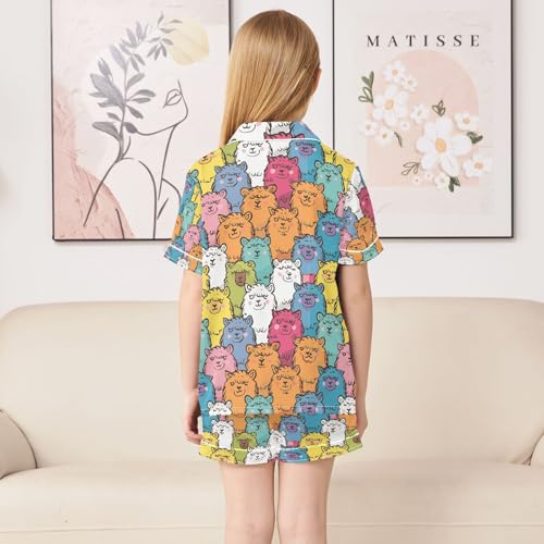 senya Color Alpaca Cute 1 Satin Summer Pajama Sets Silk Short Sleeve Button Down Sleepwear 5