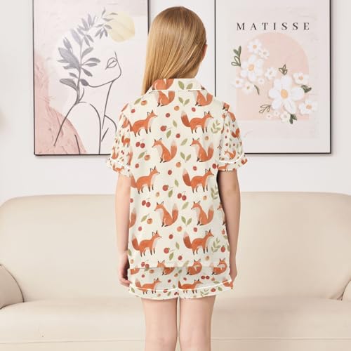 senya Fox Cherry A Satin Summer Pajama Sets Silk Short Sleeve Button Down Sleepwear 2