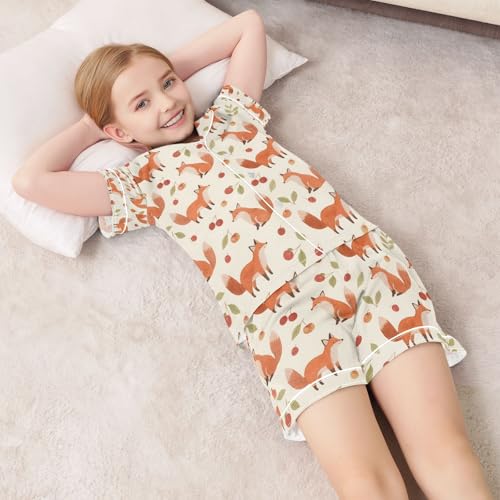 HOT ! senya Fox Cherry A Satin Summer Pajama Sets Silk Short Sleeve Button Down Sleepwear
