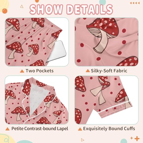More information about Red Mushroom Pattern Summer Satin Pajama Set, Cute Button-Down Sleepwear Pj Set for Sleep Wears
