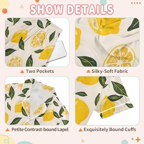 Cartoon Cute Lemon Paint Summer Satin Pajama Set, Cute Button-Down Sleepwear Pj Set for Sleep Wears 4