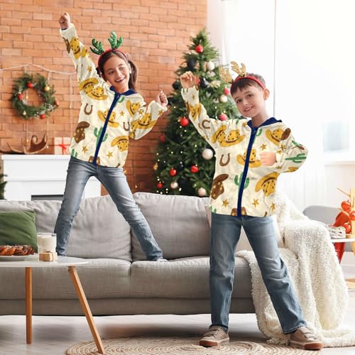 Cowboy Hats Cacti Stars Toddler Fleece Jacket Girl Boys Hooded Fleece Jacket Coat Warm Outwear Zip-up 3-10T 3