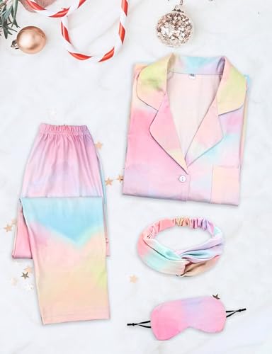 Kids Pajamas for Girls Pajama Sets 2-Piece Girls Button-down Pjs Set Soft Sleepwear Nightwear with Eye Mask Headband 4
