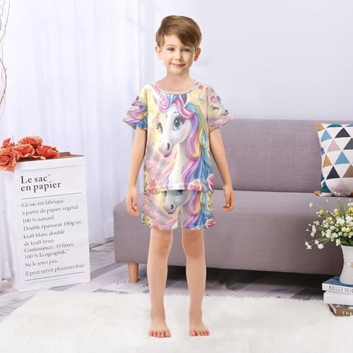 ALAZA Unicorn Rose Flower Floral Pajamas Set Short Sleeve Cotton Sleepwear Summer Pjs 2 Piece 5-14Y 6