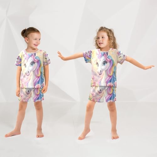 ALAZA Unicorn Rose Flower Floral Pajamas Set Short Sleeve Cotton Sleepwear Summer Pjs 2 Piece 5-14Y 2