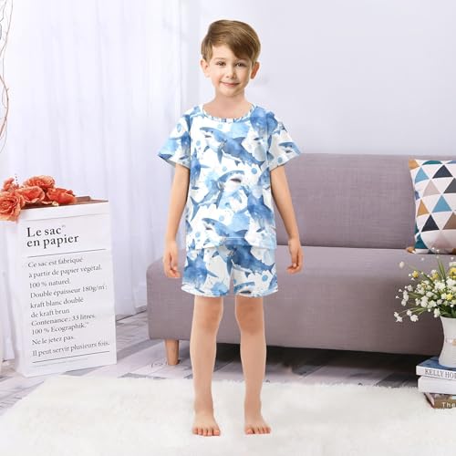 Why Choose ALAZA Shark Blue Color Watercolor Pajamas Set Short Sleeve Cotton Sleepwear Summer Pjs 2 Piece 5-14Y?