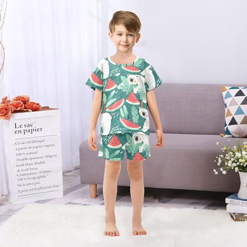 ALAZA Polar Bear Watermelon Pajamas Short Sleeve 2 Piece Sleepwear Top and Bottom Pajama Set Unisex 6