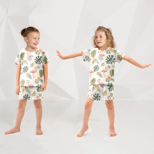 ALAZA Tropical Flamingo Hawaiian Palm Leaves Pajamas Short Sleeve 2 Piece Sleepwear Top and Bottom Pajama Set Unisex 6