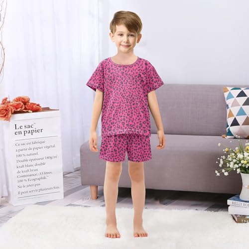 ALAZA Red Black Leopard Print Funny Pajamas Set Short Sleeve Cotton Sleepwear Summer Pjs 2 Piece 5-14Y 2