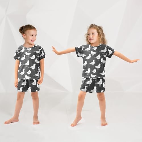 ALAZA Seagull Black Pajamas Set Short Sleeve Cotton Sleepwear Summer Pjs 2 Piece 5-14Y 2