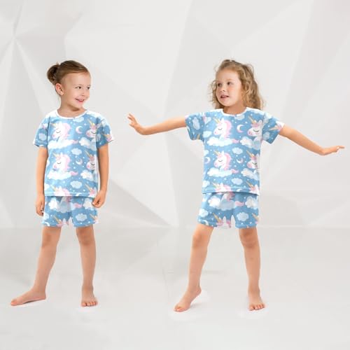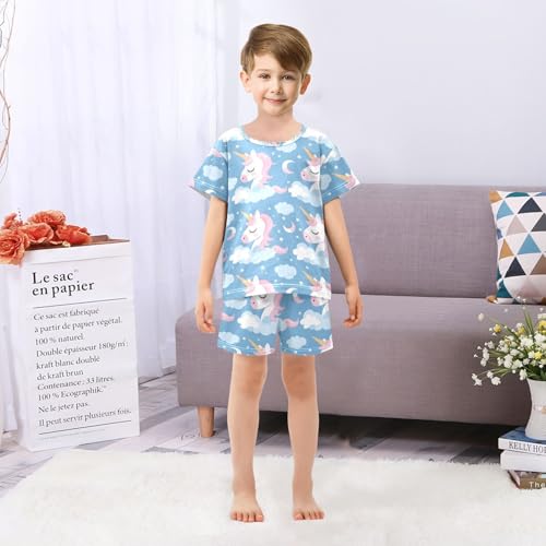 ALAZA Unicorn Moon Star Blue Pajamas Short Sleeve 2 Piece Sleepwear Top and Bottom Pajama Set Unisex 6
