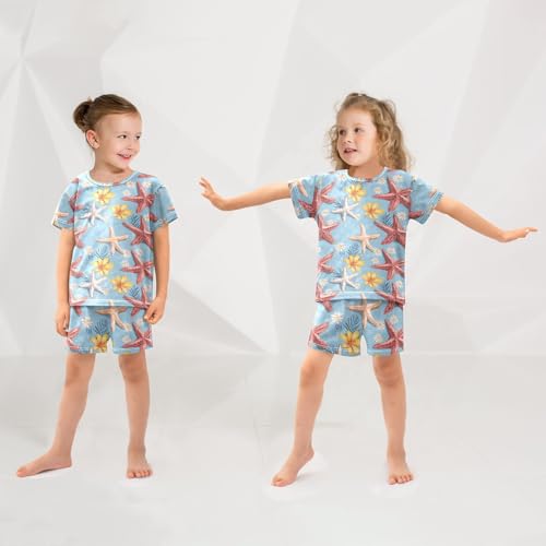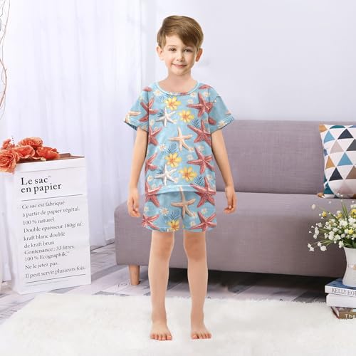 ALAZA Starfishes Flowers Pajama Set Short Sleeve Sleepwear Soft Lounge Nightwear 2