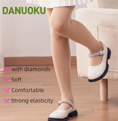 Girls Stockings 2 Pack Kids Rhinestone Stockings Glitter Tights girls Dance Tights For 6-12 Years 6