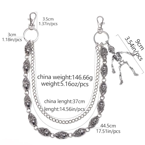 Punk Layered Pants Chain for Men Women Skull Wallet Chains Pearl Mango Jeans Chain Pocket Chains Gothic Key Chain for Pants 3