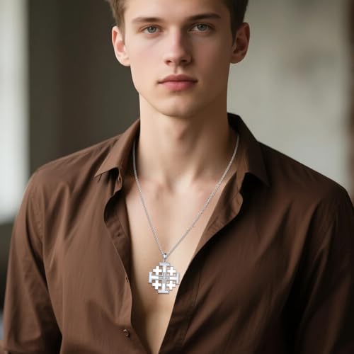 • [Design]: This Jerusalem Cross necklace features an iconic design of the ancient Christian symbol, representing faith, peace and the Holy Land. A classic design perfect for both casual and formal occasions.