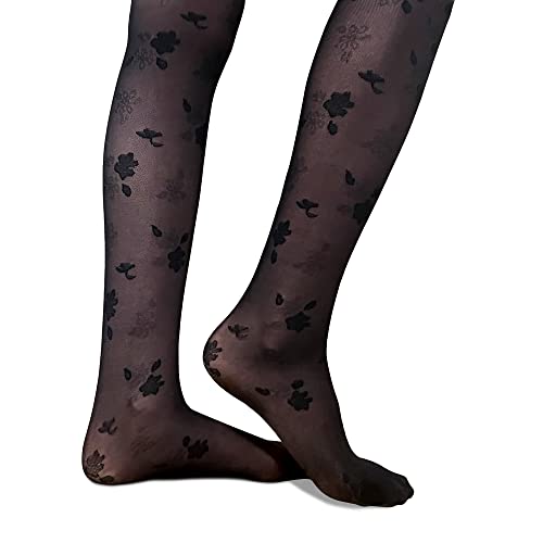 Girls Tights With All Over Floral Design. Sheer Pantyhose with Reinforced Toes and Top 5