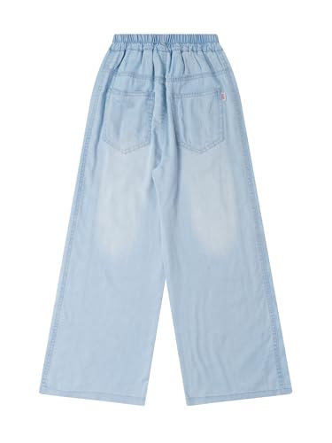 easyforever Kids Girls Casual Baggy Bowknot Wide Leg Denim Pants Elastic Waist Jeans Washed Denim Trousers with Pocket 7
