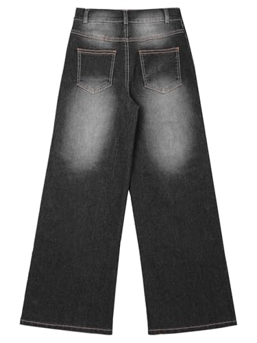 More information about Kids Girls High Elastic Waist Wide Leg Jeans Button Up Split Side Baggy Long Denim Pants with Pockets