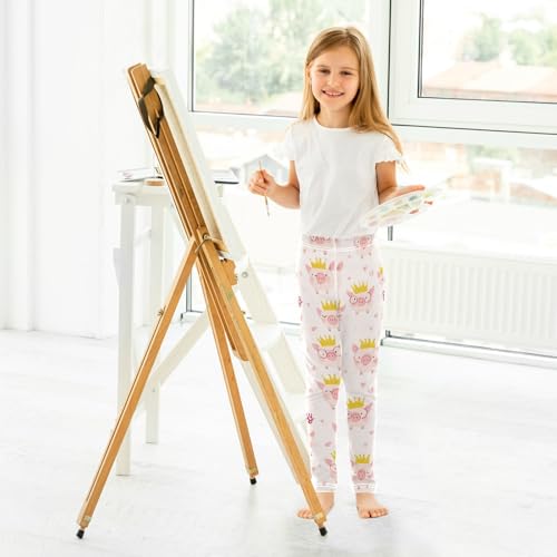 Cute Cartoon Pigs Girls' Leggings Toddler Doodles Yellow Crown Kids Yoga Pants Dance Active Tights 4T 4