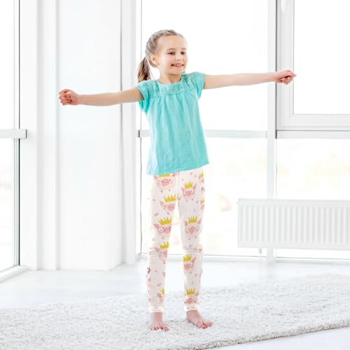 Cute Cartoon Pigs Girls' Leggings Toddler Doodles Yellow Crown Kids Yoga Pants Dance Active Tights 4T 6