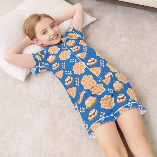 Waffles Ice Cream Summer Pajamas Set Soft Satin Pjs Sets 2 Piece Short Sleeve Sleepwear Casual Clothes 6